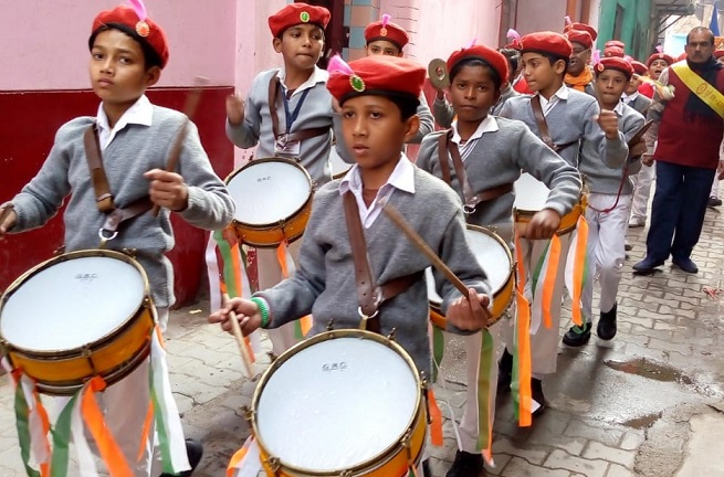 The programme started with hoisting of the Indian flag along with singing of the national anthem, which was followed by a cultural event performed by Vidya Bharati students. Later on a ceremonial procession consisting of alumni, students and guests weaved through major thoroughfares of Rampur starting and ending in the school itself.