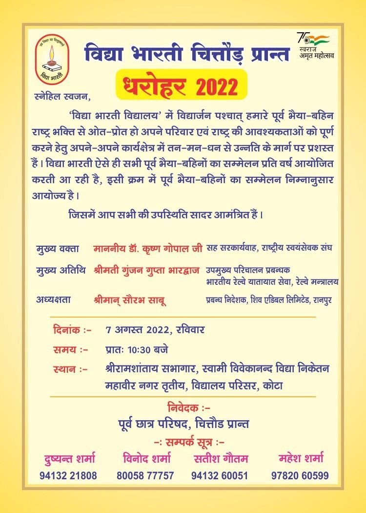 Alumni Meet 2022 Organized by Vidya Bharati Purv Chhatra Parishad, Chittor Pranta.