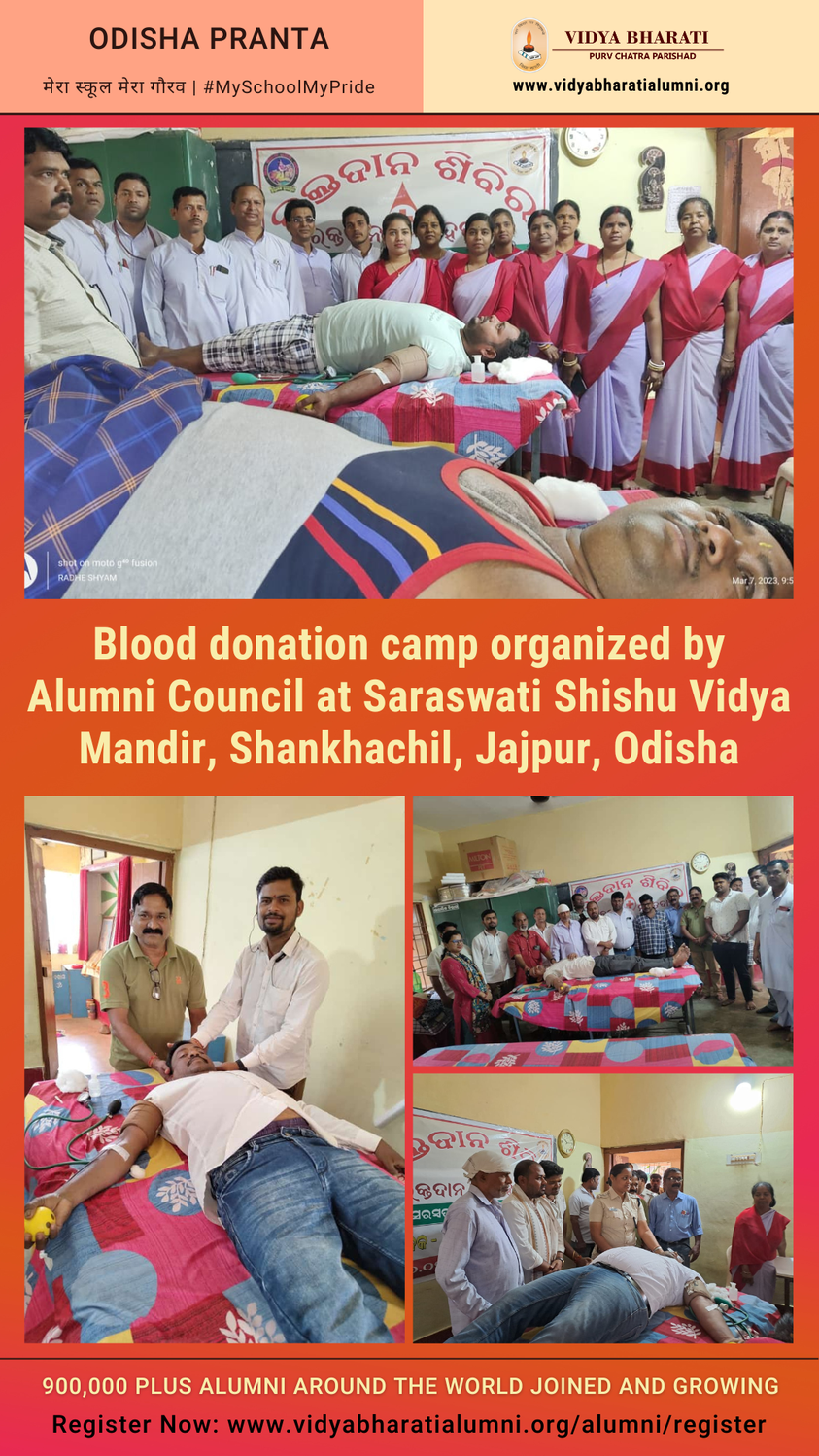 Blood donation camp organized by Alumni Council at Saraswati Shishu Vidya Mandir, Shankhachil, Jajpur, Odisha