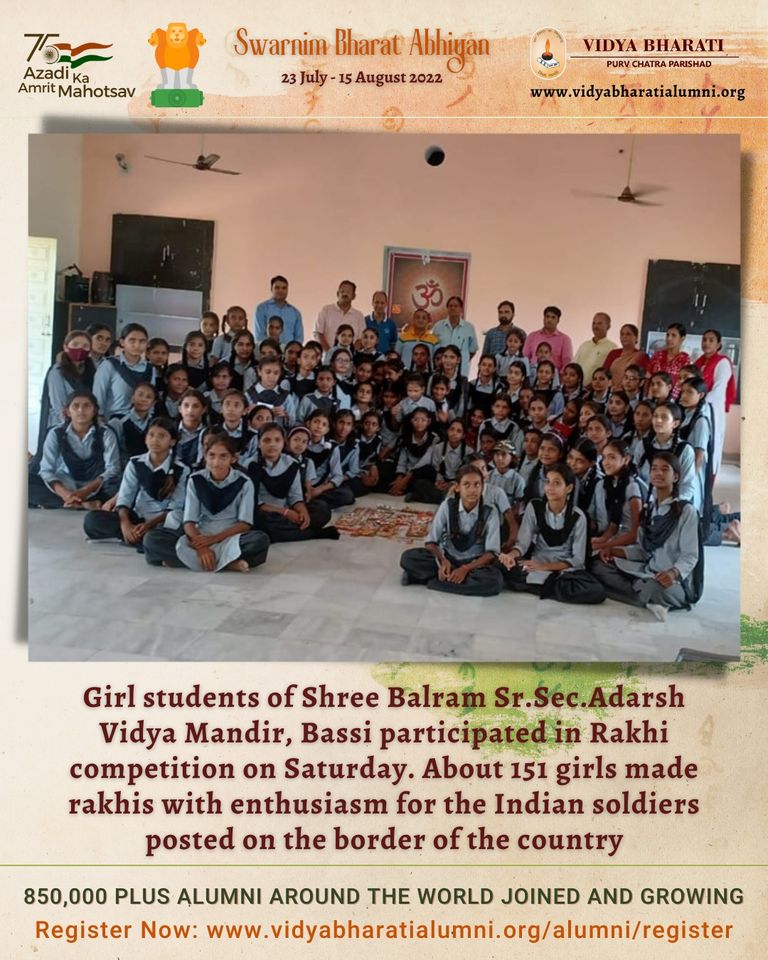 Manisha Saraswat ji, the principal of the girl's school, told that the girls made Rakhis with enthusiasm for the soldiers stationed on the border of the country. Satya Mohan Sharma ji highlighted the importance of Rakshabandhan and distributed prizes to all the students. The program was presided over by Sudhir ji. On this occasion school administrator Dr. Ram Manohar Gupta, lecturer Shri Om Prakash Sharma, Shri Amit Sharma, Shri Anil Sharma, senior teacher Hemlata Sharma, Poonam Prajapat, Godavari Sharma, Shivani Saini and others were present.https://bit.ly/3QzQwJC