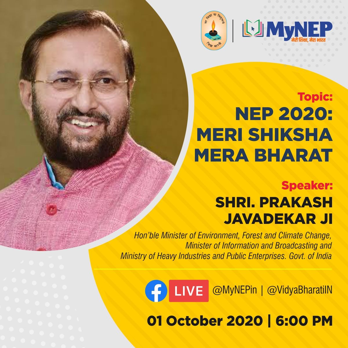 Online talk on NEP 2020 by Shri Prakash Javadekar ji was organised on 1st Oct 2020 at 6 PM