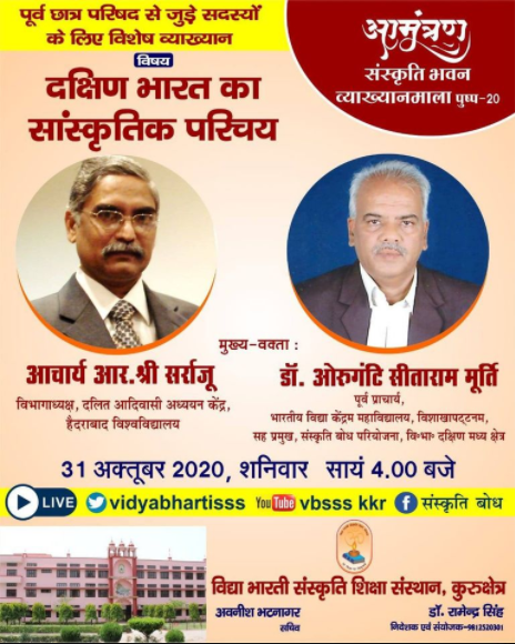 विद्या भारती संस्कृति शिक्षा संस्थान द्वारा पूर्व छात्रों के लिए विशेष व्याख्यान - दक्षिण भारत का सांस्कृतिक परिचय