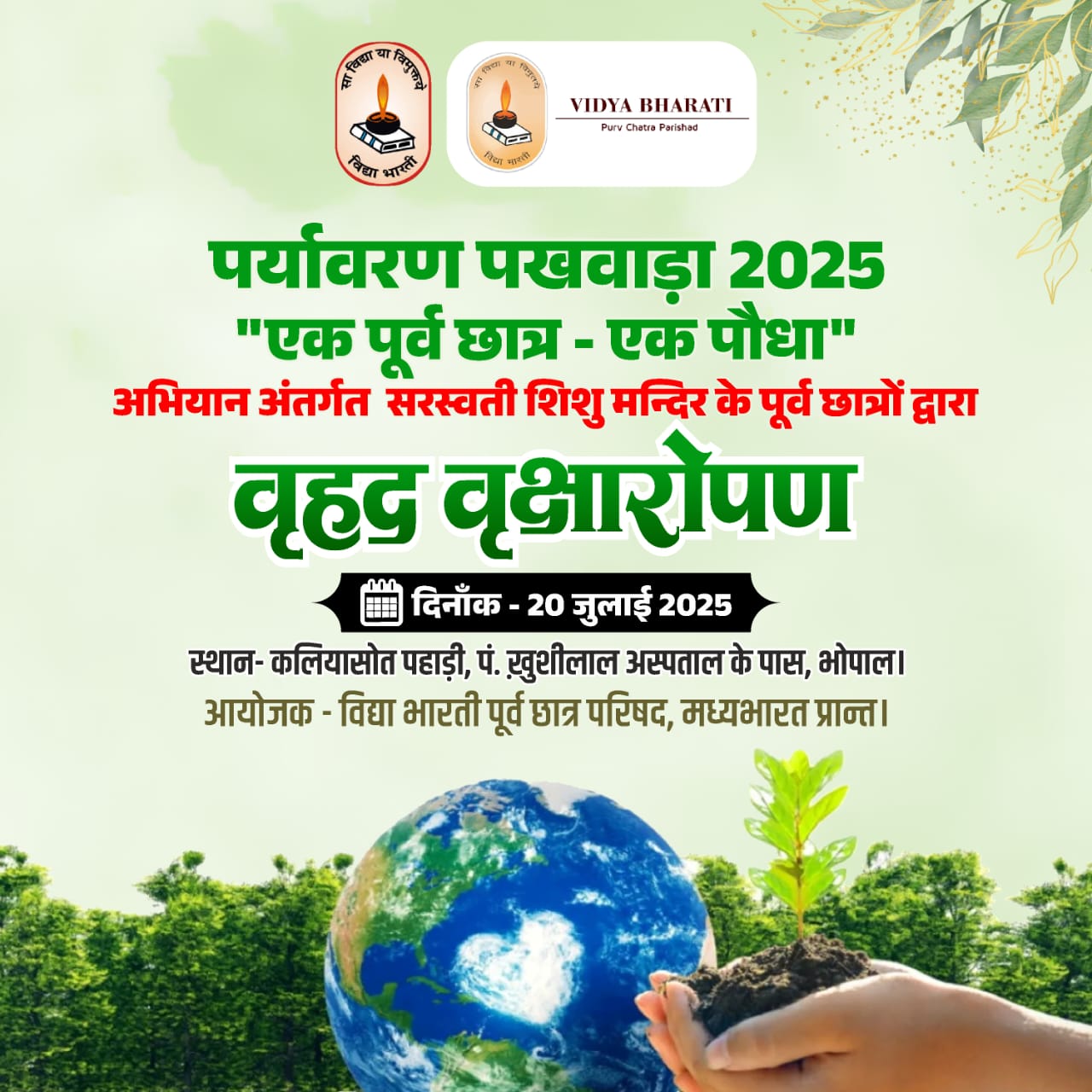 A Mega Plantation Drive, Paryavaran Pakhwada 2025, is being organized by Vidya Bharati Purv Chatra Parishad, Madhy Bharat Prant,