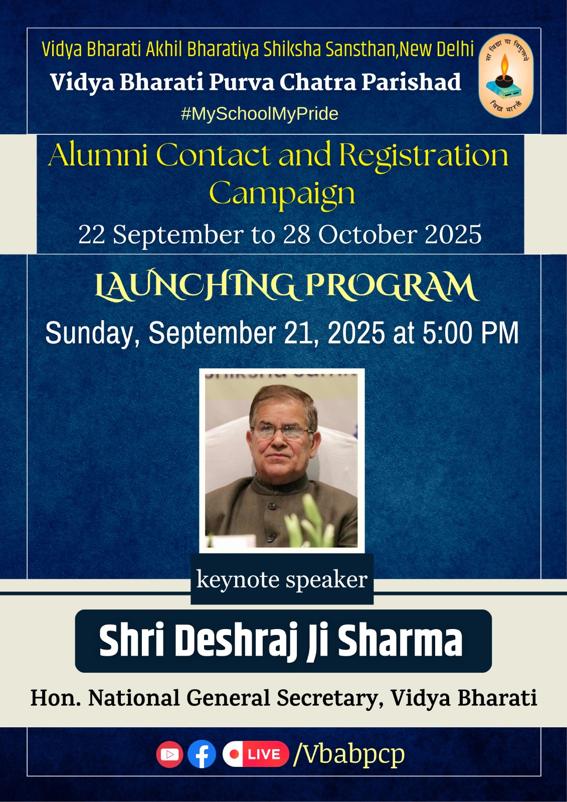 This campaign aims to reconnect with alumni across the country, strengthen bonds, and encourage greater participation in Vidya Bharati’s mission of education and nation-building.