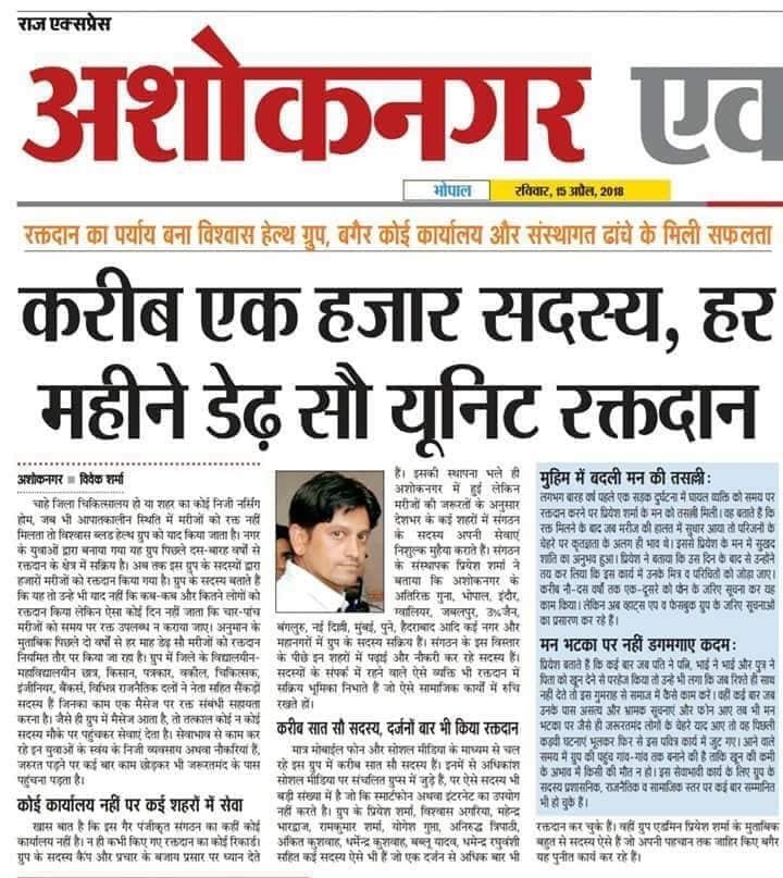 12 years ago, an incident heavily impacted the mind of Vidya Bharati alumni, Priyesh Sharma. Today with the help of Whatsapp, he has created a group of more than 700 people, who regularly donate blood to people in need. The group has already helped more than 3000 people in last two years.