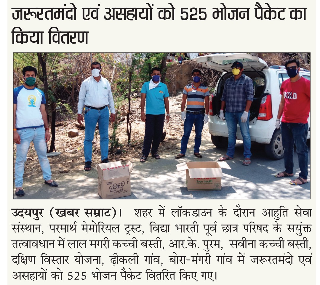 525 food packets were distributed to the needy during the lock sown by alumni members in Dhikol village and Bora-Mangri village of Rajasthan