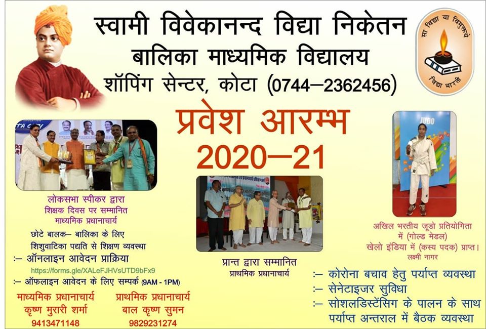 admission open in swami vivekanand vidya niketan balika sr.sec. shopping centre kota