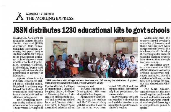 Vidya Bharati's Janjati Siksha Samiti, Nagaland, distributed 1230 necessary educational kits to needy children in Gov.schools in 23 villages of Nagaland.