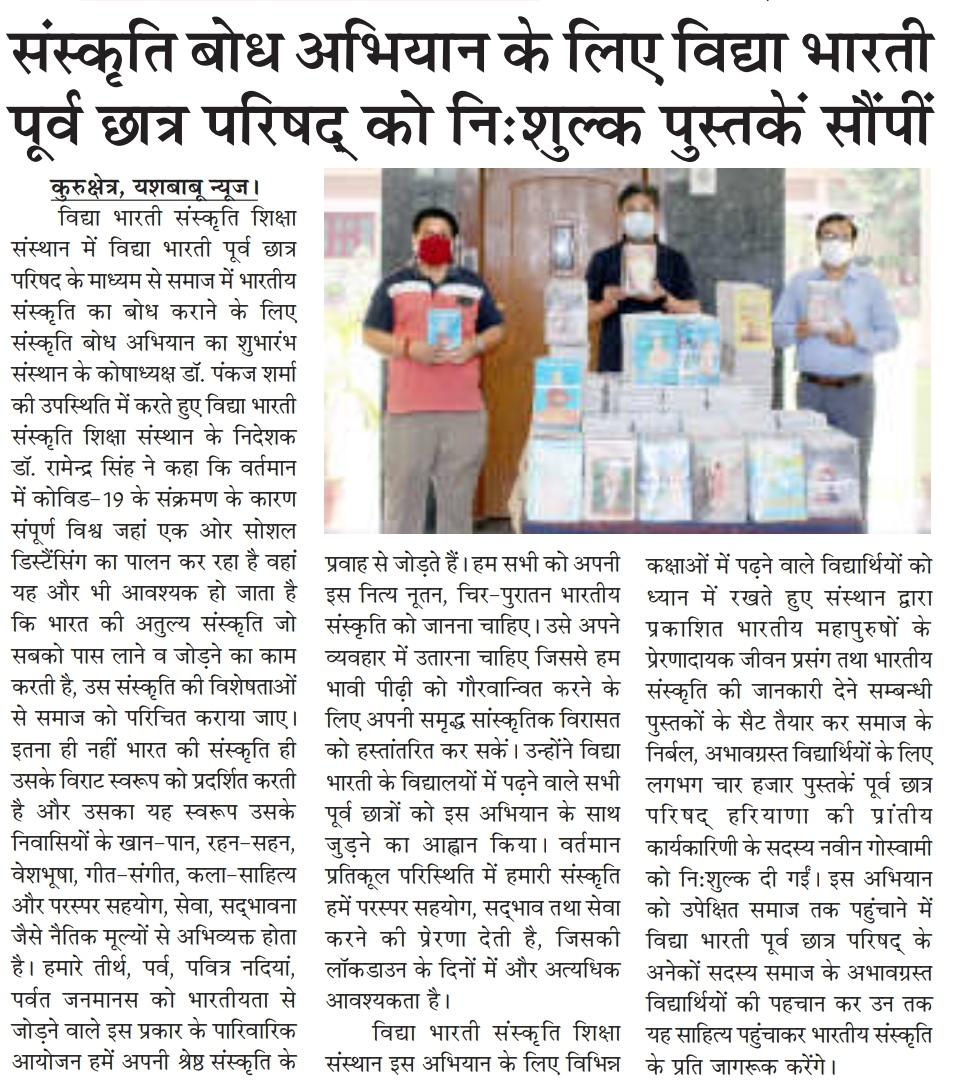 Education material are being provided by the alumni of SMB Gita,Kurukshetra,Haryana to the needy children at the time of lockdown in the Gita Shiksha Abhiyan. Additionally, each child will also be given 4-5 inspirational books.