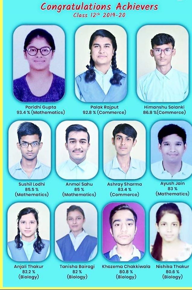 Students of Saraswati Shishu Mandir Cbse Mukharji Nagar, Dewas scores more than 80% in class 12 board examinations.