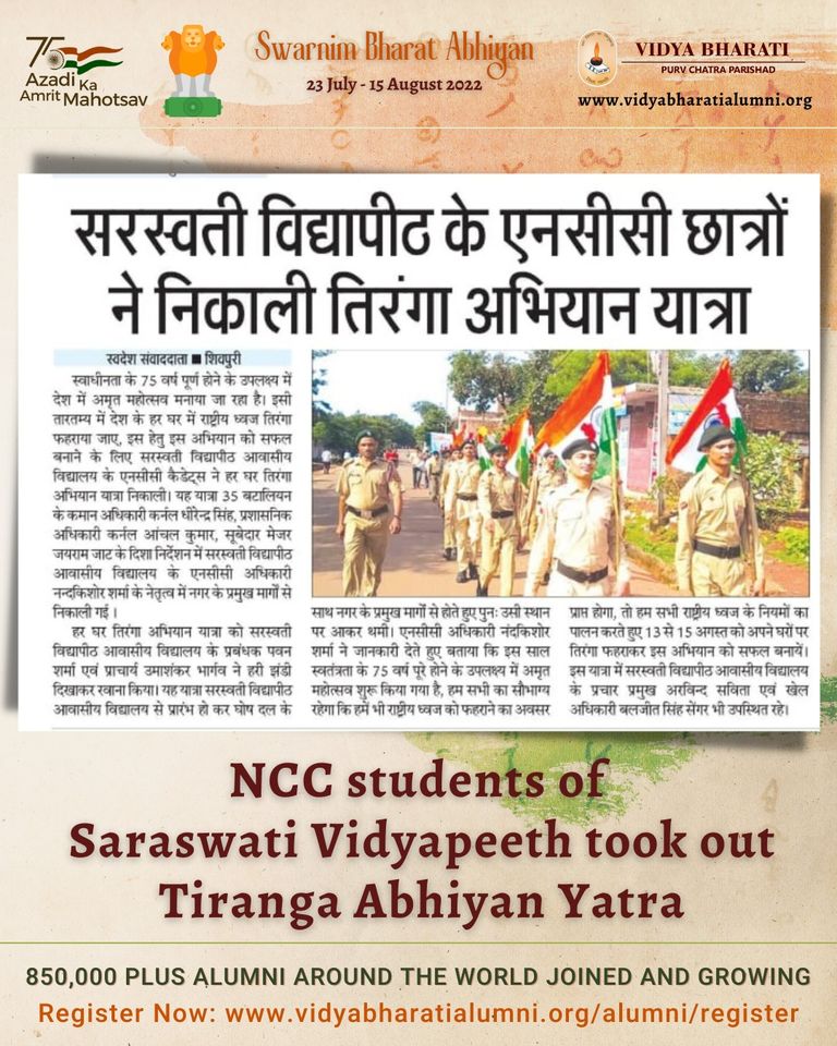 NCC students of Saraswati Vidyapeeth took out Tiranga Abhiyan Yatra
