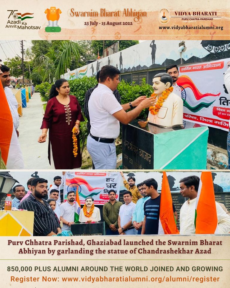 Purv Chhatra Parishad, Ghaziabad launched the Swarnim Bharat Abhiyan by garlanding the statue of Chandrashekhar Azad.