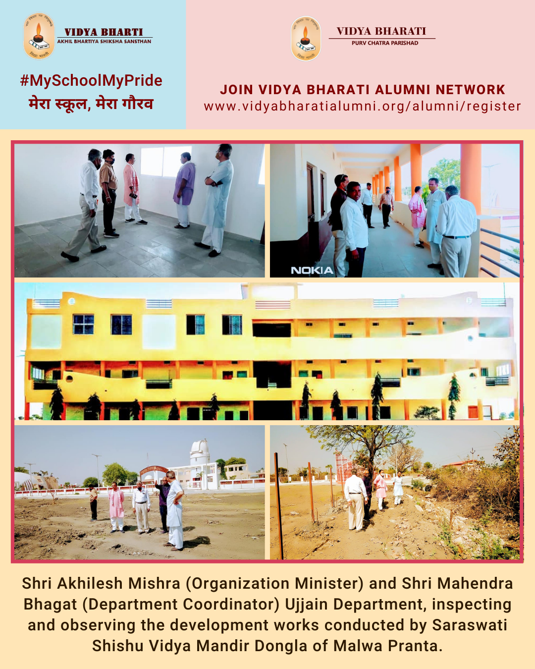 Shri Akhilesh Mishra (Organization Minister) and Shri Mahendra Bhagat (Department Coordinator) Ujjain Department, inspecting and observing the development works conducted by Saraswati Shishu Vidya Mandir Dongla of Malwa Pranta.