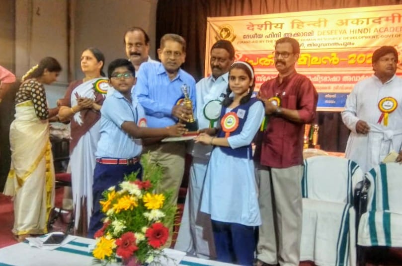 Students of Sree Umamaheswara Vidyalaya, Kannur,Kerala, Deepika Sharma received 1st and Vishnu Vivek received 2nd prize in Prathiba Milan Hindi Scholarship State Award conducted by Deseeya Hindi Academy.