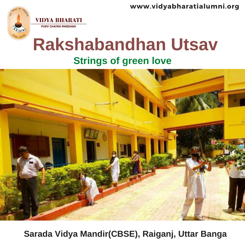 Students of Sarada Vidya Mandir(CBSE), Raiganj, Uttar Banga celebrated the Rakshabandhan Utsav in an innovative way during Covid 19 pandemic times to promote Indian culture and heritage, and to make the general public aware of the environment. The students tied rakhis on trees at their respective residences and also few of the students visited the school (maintaining social distancing, wearing masks) to spread awareness about the importance of environmental conservation.