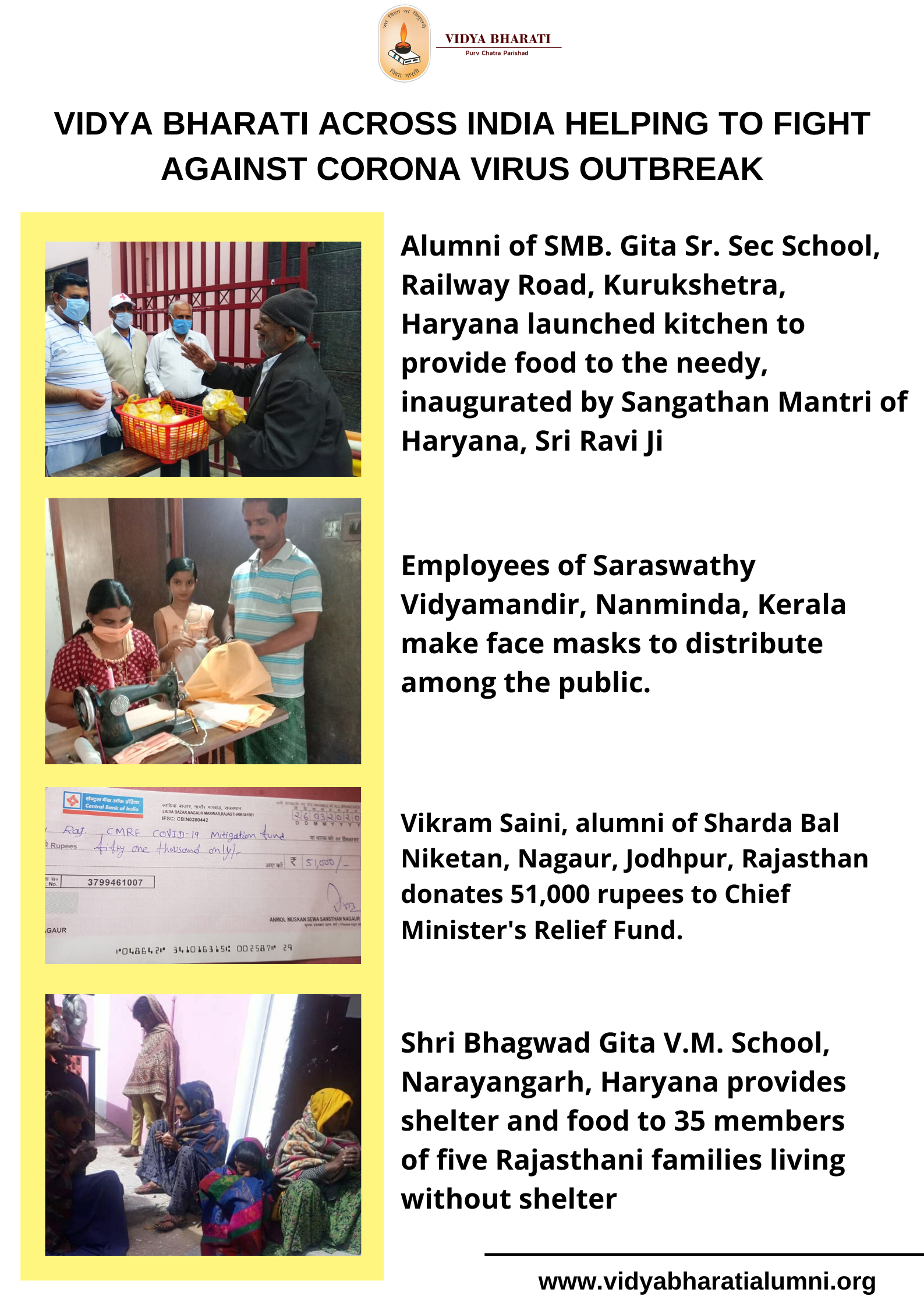 Vidya Bharati schools and alumni across India come together to fight against Corona Virus outbreak.