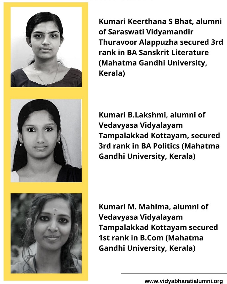 Vidya Bharati Purv Chatra Parishad congratulates allumni from Kerela for securing top ranks in University.