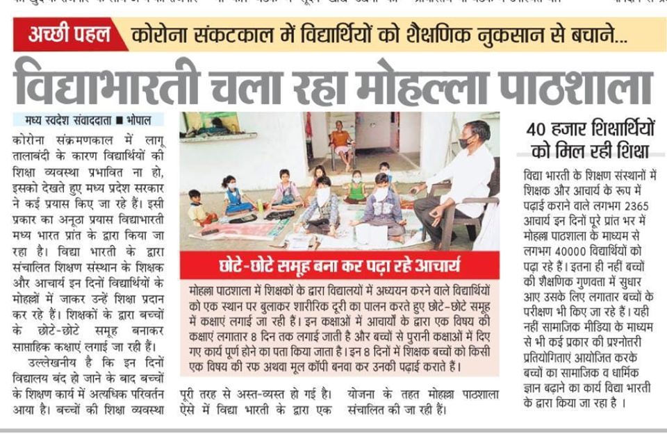 As schools are closed due to Pandemic, Vidya Bharati teachers visit student localities to teach children who are unable to use online education.